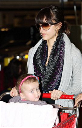 要是说模范妈妈那一定非杰西卡·阿尔芭莫属了,每每出现,都把爱女打扮的或者像小精灵或者像小娃娃或者星范十足或者可爱十分,这次我们的小杰西卡被妈妈打扮成了小俏妞,红色小发卡一带,真太可爱了,太好玩了。