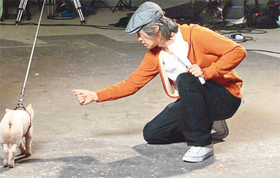 中新网3月3日电 日前,周星驰(星爷)秘密在香港为网络游戏拍广告片,平日星爷的广告多有美女相伴,但这次只有小肥猪一只。而小肥猪拍摄期间又完全不受控制,要星爷施展浑身解数来逗它,大考星爷耐心。