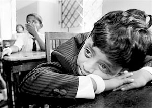 在“贫民富翁”中饰演男主角童年时期的伊斯梅尔,如今重返校园,仍穿着西装上课。