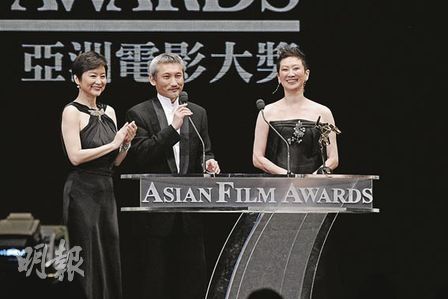 中新网3月24日电 昨天(23日),第三届亚洲电影大奖在香港会展中心举行颁奖典礼。林青霞穿着黑色露背晚装亮相,为徐克、施南生(电影工作室)颁发“亚洲电影杰出贡献大奖”。