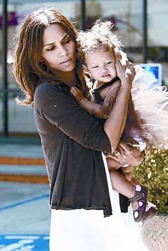 前天,哈莉·贝瑞为女儿Nahle精心打扮,带她前往生日派对。Nahle穿上纱纱裙,头上还绑朵小花,造型可爱。无奈小Nahle并不领情,在妈妈怀里不断挣扎,哈莉·贝瑞不断哄她也没用。