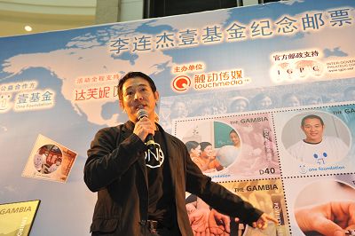 在活动现场,李连杰与触动传媒联袂揭晓了6枚一套的慈善纪念邮票。据了解,这套邮票限量10万套,定价为111元一套。这个价钱是李连杰要求的,因为111元符合壹基金“每1人+每1个月+每1元=1个大家庭”的理念,而该邮票实际面值超过60元。在昨天的活动上还发生了一段小插曲,一名来自西安的女粉丝在参与观众提问环节时向李连杰“示爱”。该粉丝拿到话筒后就显得很激动,全身上下不停地抖动,在哆嗦了半天后她大喊:“我是你西安的影迷,我从小就喜欢看你的电影,我好崇拜你,我梦想就是找到像你这样的老公。”此话一出让有妻有女的李连杰很尴尬,他只好在台上傻笑。过了几十秒,李连杰才蹦出两个字“谢谢”。