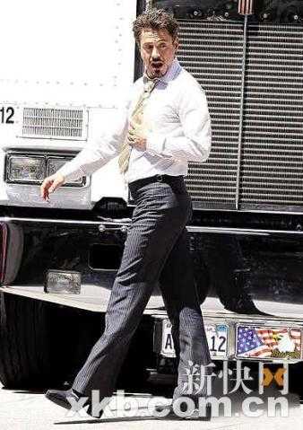 好莱坞卖座大片续集《钢铁侠2》日前在洛杉矶的帕萨迪纳正式开机。第一天的拍摄中,小罗伯特·唐尼、唐·钱德尔等主演都纷纷出现在片场。其中小罗伯特·唐尼穿着一双跟超高的皮鞋出现,加之笔挺的西裤起到提臀效果,看起来好像在走猫步一样。