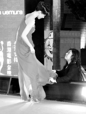 香港近来天气反复无常。昨晚尽管湿度很大,空气里几乎要拧出水来,但雨点直到林志玲和汤唯两位女星表演完红毯争艳,才稀疏地落了起来。此前只是吹吹海风,戏弄一下女星的裙子罢了。面对调皮的海风,模特出身的熊黛林表现镇定,她立即迎风而立,正好让海风吹起厚重的裙摆,原本有些臃肿的黑色长裙顿时变得飘逸起来。尔冬升太太就没有这么丰富的经验了,她刚挽着丈夫的手踏上红地毯,一阵海风就撩起了黑色的半裙。她赶紧双手按住裙摆,就像玛丽莲·梦露在《七年之痒》中的那张著名剧照一样,只不过她的神色十分慌张。掀裙事件给她留下了心理阴影,此后她双手一直按着裙摆不敢松开,拍照时也藏在尔冬升身后不愿露脸。记者 杨莲洁