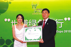 周迅在发布会上,透过媒体高调呼吁:希望能通过以身作则的榜样效应及社会影响力,带动全民参与到绿色出行活动中,为中国2010年上海世博会创造畅通的出行环境,更有力地传播“绿色世博”环保理念。