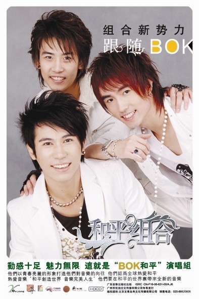 BOK和平组合以其独特的风格在音乐领域的不断延伸,在国内的乐坛崭露头角,更被业内人士预测为07年内地某财团力捧对象。除了在音乐上的执著追求令人感动之外,他们不断拓展创新的专业精神更是为人看重的潜力所在。据悉,BOK和平组合3个帅气真诚的大男孩将在2007年参演一部以爱情为主线的青春偶像剧,他们将会在影视歌多方面发展。