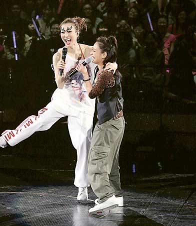 中新网5月21日电 香港明报报道,郑秀文(Sammi)前晚(5月19日)第2场演唱会,吸引大批圈中好友捧场,计有绯闻男女薛凯琪与方大同结伴到场,还有超级Fans钟欣桐(阿娇)、容祖儿、蔡卓妍(阿Sa)、梁洛施、张敬轩等。在首场阿娇发生与Sammi握不到手的傻事,前晚Sammi见她再度捧场,即时请她上台合唱弥补。阿娇自爆第一晚握不到手被取笑了一天。Sammi则说与阿娇均常被取笑肥,前晚她近距离看清楚,发觉阿娇只是比她多一点点(肉)而已。阿娇听到开怀大笑,两人并合唱王菲早期歌曲《多得他》。