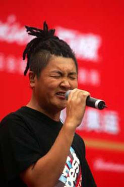 昨天上午,孙楠以全新形象和奥运射击冠军杨凌、奥运跆拳道冠军罗微在长城脚下共同演绎了歌曲《红旗飘飘》,伴随着歌声,一面创造了吉尼斯世界纪录的2008平方米的巨幅红旗缓缓展示在众人面前,为“百威万人骑行迎奥运”活动画上了完美的句号。