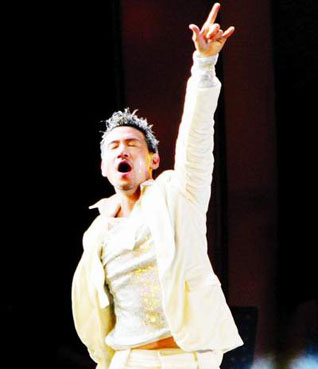 张学友唱了四首快歌,每首都伴以时下最流行的舞蹈元素,他与身边舞蹈演员的配合也非常默契整齐。几首歌下来,他的额头上已满是汗水,“喜欢我跳舞吗?”张学友大声问歌迷,台下一致回答:“喜欢”。“喜欢也没办法,再跳下去我没法唱歌了。”张学友很诚恳地说:“只要你们坐在这里,想听的歌就一定会听到。”