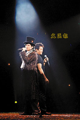 中新网9月10日电 据香港文汇报报道,古巨基“The Magic Moments Live 2007”前晚于红馆举行第二场演唱会,除方力申、侧田、小肥等六位“金牌”兄弟外,这晚更请来好友郑伊健担任嘉宾。