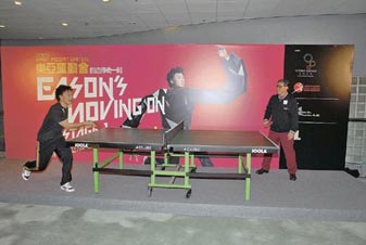 中新网10月16日电 陈奕迅演唱会早前加开至13场,歌迷依然反应热烈,他昨日宣布再加开11月9、10日两场,所有门票收益会捐给2009年东亚运动会作为营运基金。运动会筹委会主席霍震霆出席与Eason进行一场乒乓球友谊赛。