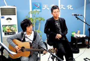 昨天,羽·泉在北京一家录影棚中现身,二人正在为这周六举行的“黄金10年”演唱会进行排练,排练间隙二人告诉记者:“只凭票房这场演唱会铁定赔钱。”