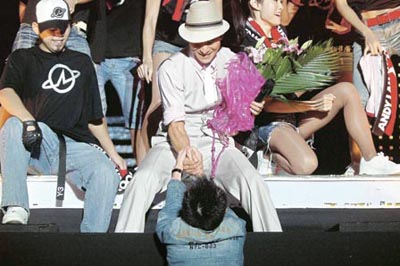 上演勇救歌迷一幕,再上舞台的华仔,获得现场6万多观众欢呼:“华仔我爱你!”华仔在台上说:“我知道保安、警卫你们都是为我好,对不起让你们担心,我没事,我很好。”接着也要教训该卤莽歌迷说:“演唱会有演唱会的规矩,歌迷再热情也要顾安全不应该乱闯,想跟我接触只要加入‘华仔天地’就可以,不要用一些不安全方法让我担心,也让保安及警卫他们为难。”