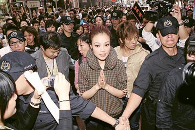 据香港明报报道,在派发海报时场面非常混乱,有否担心人多混乱被偷摸?祖儿说她一直是做双手护胸动作,而且Fans会自发性为她开路,她说:“Fans长大了,也不再像以前般疯狂,不过助手都有被人拉扯。”