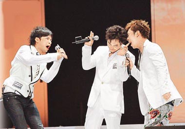 音乐会以10年回归为主题,席间播放已故巨星张国荣、梅艳芳、罗文及黄霑等片段,平添伤感气氛,祖儿慨叹:“最不开心是有个人见证不到我的成绩,就是我老师(罗文)。”阿诗则说:“最不开心同最大冲击的是师父(梅艳芳)离开。”而10年内痛失父母的安仔,则以一曲《单车》怀缅至亲。另外,日前新城举行颁奖礼记者会,Eason惨被安仔取笑迟到后解释:“是吗?我后面还有人哦!不好意思,今年拿少个奖咯!”