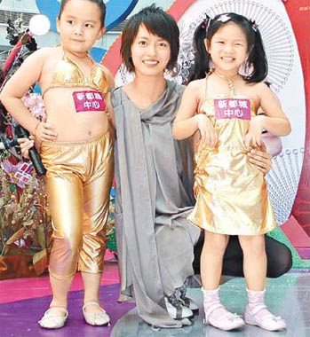 中新网12月17日电 梁咏琪(GiGi)本周五将在亚洲博览馆开唱,昨天她出席在将军澳举行的“梁咏琪才女好友会”活动,期间有多名歌迷演绎梁咏琪歌曲比赛,更有两位小妹妹穿金色比基尼及露背装现身,逗得梁咏琪笑个不停。