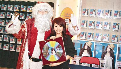 中新网12月24日电 据香港太阳报报道,邓丽欣(Stephy)昨天到旺角唱片店举行新碟签名会,吸引大批歌迷支持,一出场便获圣诞老人送赠金唱片作圣诞礼物,祝贺新碟达二万张销量。为奖励自己,她还自掏腰包买了五张碟,问她会不会送给绯闻男友方力申,她说:“叫他自己买,我想留着来做圣诞礼物,去Party抽奖。”