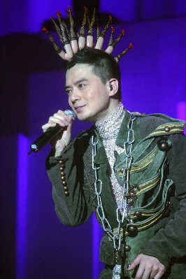 与其他流行歌手的演唱会相比,昨夜的上海大舞台并未爆满,但好在满场都是黄耀明以及“人山人海”的死忠粉丝,所以当周耀辉、当李端娴、当AT17的ELLEN以及林一峰等人陆续入场,均收获了粉丝的热情尖叫。整个现场犹如“人山人海”与家人的节日聚会一般热闹,还未开场,内场前区已经挤满了随着音乐跳跃的歌迷。当灯光全部暗下,伴随着歌迷热情的欢呼声,黄耀明猛然出现在舞台正中,幕布尚未全部拉开,身着白色羽毛裤的黄耀明唱起歌曲《下世纪再嬉戏》。戴着黄耀明经典的妖精耳朵或者头顶白色长发的歌迷们开始集体大声跟唱。或许对于不少死忠歌迷而言,这场演出仍然伴随着许多遗憾,比如黄耀明的造型在早前许多演唱会上用过,开场的帽子曾在“满天神佛”演唱会上用过,羽毛裤则曾在“光天化日”演唱会上穿过,而后换上的第二套衣服也曾在“达明一派为人民服务”演唱会上用过。但每当他下台换装,场内便会响起一阵阵期盼的欢呼声,甚至有歌迷干脆对着停下来与歌迷打招呼的黄耀明大喊:“讲广东话!”对歌迷而言,能够一次看到“满天神佛”、“光天化日”以及黄耀明与港乐合作的三场演唱会的精华,也算是不虚此行。