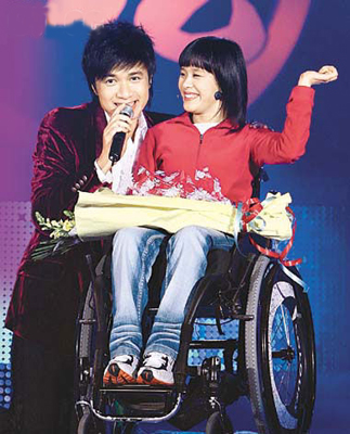 中新网1月3日电 日前古巨基获中央电视台与奥委会邀请,出席在北京举行的倒数晚会,基仔与前运动员桑兰合唱《好想好想》,由于桑兰需坐轮椅,为迁就她及拉近距离,基仔跪地合唱,场面温馨,歌迷亦大合唱将气氛推至高峰。