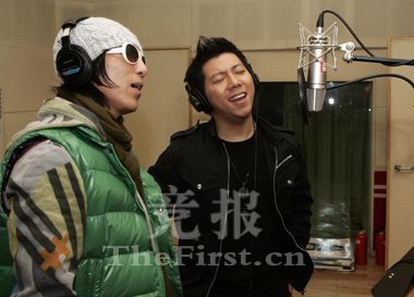 去年年底举办了一场翻唱演唱会,羽·泉至今还没能断开和翻唱的缘分。新年的第一支单曲又是翻唱作品——经典英文歌曲 《can’ttakemyeyesoffyou》。日前,他们正式进棚录歌。不过,对于羽凡来说录音肯定不踏实,因为他的宝宝可能提前降生。