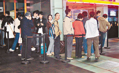 至于另一边圆方的售票站,因信用卡付款出问题只能收现金,令卖票进度大阻,单排头位买票便花了近一小时,其他轮候歌迷要急急往银行提款,以免耽误事。对于售票机制,学友经理人陈淑芬说:“因为不在红馆搞,所以就没有限制了!”提到信用卡机失灵,她说:“不关这部机的事,是电话线出问题,后来也就没事了!”