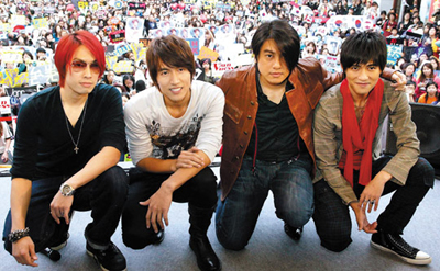 F4前天在淡水渔人码头发表新歌,4人合体魅力加倍,唱片销售量暴增7000张,昨天趁势举办专辑盖印会,满足粉丝跟F4近距离接触。面对媒体逼问,仔仔虽然心情沉重,但一站上舞台仍挤出笑脸,温柔地帮歌迷披上围巾,还拱朱孝天跟歌迷舌吻。意外抢走焦点,仔仔对F3感到不好意思,朱孝天笑说,“仔仔功力大增,我现在管不住他了。”