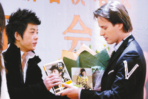 昨天的发布会在某酒店内举行,比起半年前演唱发布会上的喧嚣,明显要清静得多。不少媒体都由于其他采访而未到场。Vitas的铁杆粉丝到场的也不足百人,而维持秩序的工作人员也只有十来个人,比上次少了很多。