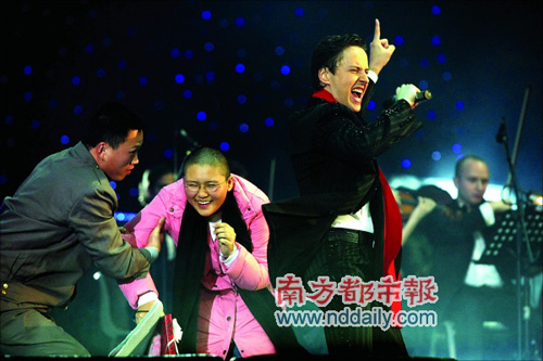 上周六晚,俄罗斯神奇的男高音Vitas第二次来到广州开唱。当晚,高到男女莫辨的声音响彻广州新体育馆,寒冷的空气中人群沸腾。《星星》、《歌剧2》、《第五元素》等挑战人类声音极限的歌曲得到了观众最热烈的欢呼。Vitas第二次来广州也放开胆量走进了疯狂的观众席,成功引起场内人流汹涌,满场骚动。也正因为歌迷们太激动,让此番Vitas广州、深圳两场演唱会充满惊险。被歌迷摸脸、强吻、拉倒的场景屡次出现,甚至还有献花女粉丝当场晕倒在舞台上,让一直保持迷人微笑的Vitas都手足无措。