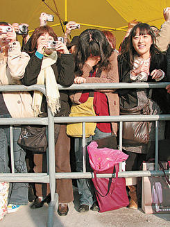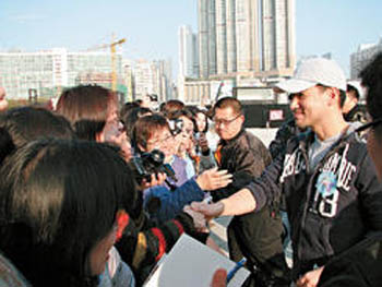 中新网2月4日电 张学友昨日4时45分在西九龙中天地为巡回演唱会的最后一场演出拜神,一身运动衣帽现身的学友一如过往,与在场等候的过百名中、韩、港、台粉丝逐一握手和收礼物,并且不时露出笑容和举起拇指,只是明显有两声咳嗽,而现场更有粉丝一见学友即感动落泪。学友虽然未有接受访问,但拜神期间相当诚心,更准备了鸡、鹅、生果、以及4只烧猪。