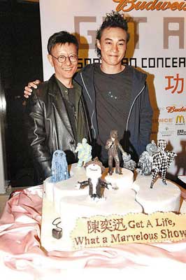 狱中因肝病恶化需儿子换肝的陈裘大摄于06年2月出席儿子陈奕迅演唱会庆功。香港文汇报图。