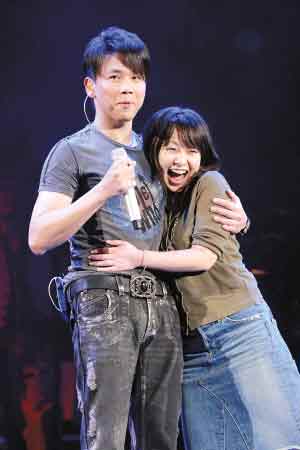 之后陶喆再请来一名身材比较丰满的日本女歌迷上台,伴他一起唱《流沙》,陶喆更公开大赞该歌迷很靓女,唱歌期间,陶喆不是拖着这位女歌迷,就是紧紧揽着她,最后更大方吻向对方的额头,这位女歌迷也幸福得错把自己的名字说成“很高兴”,而台下歌迷更是尖叫连连。