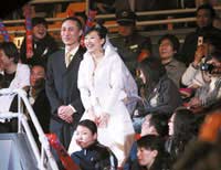 一对新人身穿礼服来看演唱会。(邹红/摄)