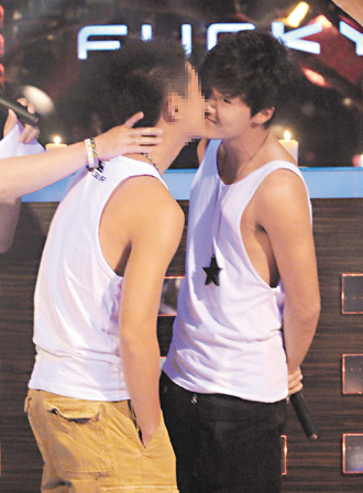 中新网5月26日电 吴克群首度踏入同志(同性恋)夜店“Funky”表演,献出另类初吻!据台湾“联合报”报道,有“拳王”之称的吴克群,自认划拳一向不输人,大胆接受挑战,没想到竟猜输了,吴克群当场和男歌迷嘴对嘴接吻5秒钟,引起全场观众拍手叫好。