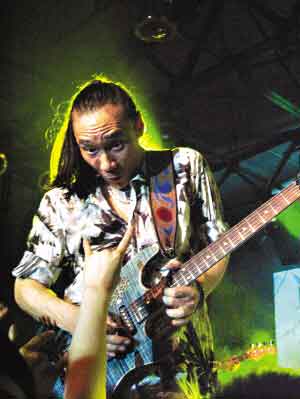 唐朝乐队依然是王者风范,主唱丁武那辽远、高亢的嗓音,再一次震动我们的心灵深处;主音吉他老五凶猛的演奏风格不时拨动歌迷记忆中的岁月,台上的他们虽已不如十几年前那般青春,可“杀伤力”仍不减当年。