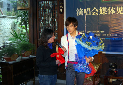 20日李易峰带着获奖的喜气回到成都,为12月“她来听我的演唱会”个唱做宣传。他十分有心的选在环境幽雅的茶馆,亲自冲泡功夫茶与家乡媒体轻松聊天,娴熟的功夫茶艺令人很难将他与平日阳光动感的“校草”形象联系在一起。李易峰表示成都人爱喝茶,从小也受到家人的影响,但茶道却是一个人在北京时为了打发时间学会的,后来发现在冲泡功夫茶时心容易安静下来,对爱冲动的他而言是很好的心态锻炼。李易峰也巧妙的将自己的成都个唱比作“茶”:在冬天给人温暖,并值得慢慢回味。