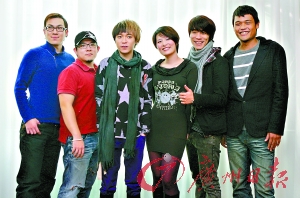 今晚,台湾人气团体苏打绿将在广州体育馆举行祖国大陆巡回演唱会的第3场,昨日,6个成员一到广州就出现在记者面前。对于今晚的亮点,主唱青峰则一口气介绍了几个“第一次”: “这是我们第一次在平安夜开演唱会,也会唱整个巡演中只出现一次的一首神秘歌曲,但安排得比较后,如果没有安可,可能就不会唱了。而乐队也将以全新的配置出现,从广州开始,以后的伴奏乐队都将以弦乐四重奏加长笛的形式。”