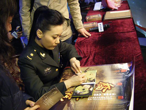 两点半,谭晶准时来到活动现场,今天的她一身军装,漂亮之余又显英姿飒爽。在主持人宣布活动开始之后,谭晶不仅一一给歌迷们签名,还满足了大家合影留念的要求。而她始终不变的笑容,也让歌迷们倍感亲切。