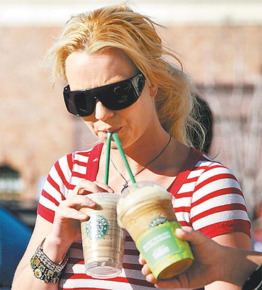 中新网2月6日电 据台湾媒体报道,布兰妮(Britney Spears)去年底好不容易瘦身成功,美国灵媒德瑞克卡里却唱衰她今年会再暴肥。但她似乎不担心,照样大吃大喝垃圾食物、奶昔等高热量食品,甚至“双管齐下”,同时喝自己和友人的饮料,“吸引力”惊人。