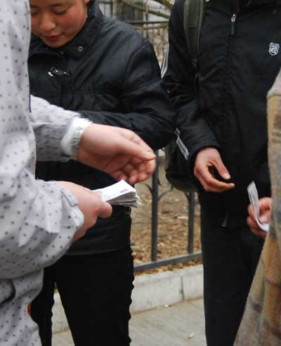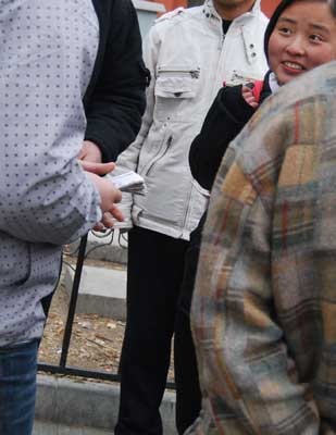 从赵焱手里领到钱的群众演员小李告诉记者:“他问我有没有吃饭,很关切的样子,我说我好多天没拍戏了,好久没吃一餐饱饭了,他就给了我五十块钱,让我去吃个饱饭,今天下雪,我真是又冻又饿,这五十块钱真是雪中送炭!”记者注意到,赵焱给每一个人发钱前都会与人聊几句,似乎是了解情况,然后决定要给这个人发多少钱,一位只领到五块钱的小伙子告诉记者:“他在发钱的时候,有个出租车司机也跑过来领钱,他就没给人家。”