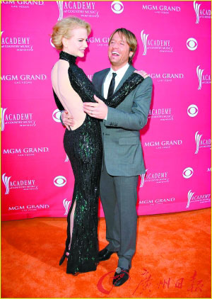 当天,颁奖礼上星光熠熠,嘉宾詹妮弗·洛芙·休伊特一袭白色长裙登台,模特玛丽莎同样也选择了白裙。美国青春女歌手麦莉·塞勒斯、奥斯卡影帝吉米·福克斯、男星马修·麦康纳等都是当天的颁奖嘉宾。不过,在当天的红地毯上的亮点还是妮可·基德曼夫妇。妮可的老公、澳大利亚著名乡村音乐歌手凯斯·厄本是当天的表演嘉宾,而妮可一身大露背装更是抢走了颁奖礼的不少风头。(星 星)