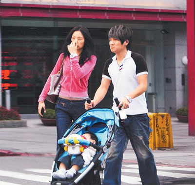 中新网4月14日电 台湾“金曲歌王”曹格一家3口温馨散步被拍,一个潮爸、一个酷妈,十分登对。曹格顶着紫色厚发推娃娃车,乐当奶爸。