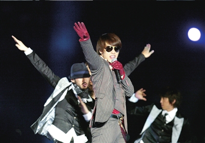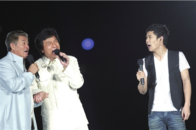 昨晚的演唱会嘉宾云集,舞台设置也颇有阵势,在中心舞台的四周分设了6个舞台。晚7点半,《龙的传人》前奏响起,成龙身穿白衣击缶登场,与所有的演出嘉宾合唱一首《龙的传人》。