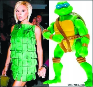 维多利亚随踢球的丈夫贝克汉姆来到美国后,利用一切机会宣传她的时尚着装理念,甚至直言好莱坞明星不会打扮。这不,随着老公租借到AC米兰,贝嫂又给意大利添了一抹亮色,至于是靓色还是雷人就仁者见仁智者见智了。不过辣妹的72变功力的确令人眼花缭乱,一会忍者神龟装,一会火鸡装。娇娇