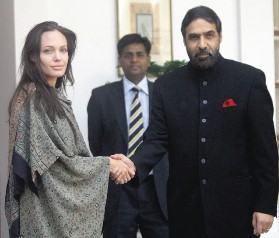 安洁莉娜入境问俗的披着印度式披肩,打扮相当朴实。稍后她拜会了印度外长阿南沙玛,讨论难民问题,一谈一个多小时。