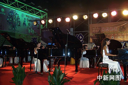 在开幕式现场,记者看到:由三十架钢琴搭成的绚丽舞台,三十位来自绍兴文理学院的志愿者正在深情演奏新改编的经典越剧曲目,引来参加此次越剧节的嘉宾纷纷驻足欣赏。据悉,如此规模的大型钢琴演奏在浙江尚属首次。