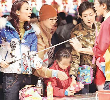 期间小卓林吵着要玩机动游戏,廿四孝母亲吴绮莉此次却不准,不过立即带女儿到扔玩具的摊位,并换了一大堆代币,两母女玩得不亦乐乎。由于女儿想要玩具,吴绮莉更站在摊位良久,一局接一局玩完又玩,最后成功赢得两只巨型公仔,洗尽铅华的吴绮莉,早已忘记自己曾是圈中人,当场欢呼起来。