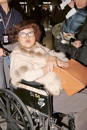 香港明报消息,肥姐于昨晚7时许在女儿欣宜等陪同下坐着轮椅出闸,现场约有20多名记者,肥姐精神看来不俗,可能坐得太久长途机,所以双脚有水肿情况,而她神情轻松,对于现场采访的记者提问,她都未有回答,只报以微笑。