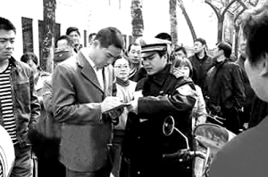 不到5分钟,西城交通支队西单队和月坛派出所的民警赶到现场。此时,奔驰车上又下来一名脸上戴着墨镜的青年女子。(记者雷娜)