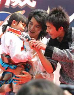 继前日启动仪式上激情呐喊后,昨日下午,去年好男儿冠军蒲巴甲和“动漫小子”向鼎又齐齐亮相红星路广场助阵好男儿拉票会。有趣的是,蒲巴甲的“发小”——藏族小伙阿桑成为昨日第一个报名参赛的好男儿,两位好友不仅在现场深情对唱一曲《康定情歌》,还相约“会师上海”。据统计,昨日共有500多人报名参赛。