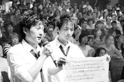 现场部分观众一时间完全愣住,搞不清楚发生了什么事,这一画面通过湖南娱乐频道向观众直播了出去。